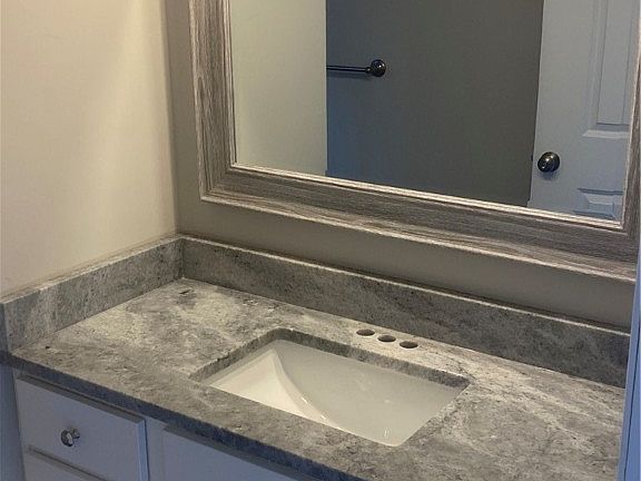 - Bedroom on Main Level, Ceiling Fan(s), Cathedral Ceiling(s), Double Vanity, Eat-in Kitchen, Granite Counters, Kitchen Island, Bath in Primary Bedroom, Recessed Lighting, Walk-In Closet(s)