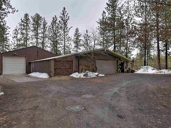Affordable country living on 5 acres! Main house features large kitchen with full appliance package. 2 cozy family rooms with a wood burning, and pellet stoves. Sunroom with tons of natural light. Energy efficient vinyl windows and fiber cement siding. Awesome 30x48 shop AND 30x30 shop with two 12 ft lean-to's. Both are fully insulated and heated with 220 amp power, water, and 1/2 bath. Separate guest house or mother in law quarters. Property is fully fenced and horses are allowed. 2 wells on property. View of Long Lake. All paved access. Property adjoins Avista land.