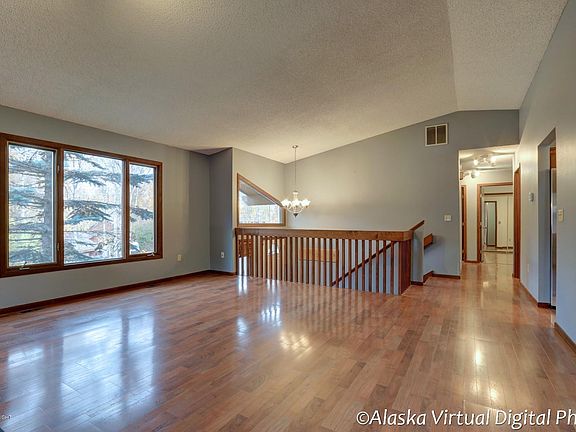 Easy commute to Anchorage, JBER or the Valley from this beautiful Chugiak home located in a cul-de-sac. Property features living room upstairs w/vaulted ceilings, laminate floors & wood burning fireplace. Kitchen w/stainless steel appliances & breakfast bar. Large family room downstairs w/huge storage area! Lot faces SW & features a massive terrace & deck in the backyard, great for entertaining!