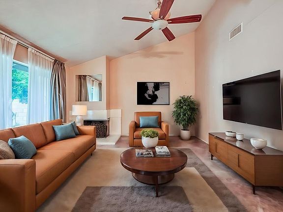 Priced to sell quickly. Needs TLC. Great, Touchstone, 4 bedroom, 2 bathroom floor plan with family room that opens to kitchen and large living room with vaulted ceiling and cozy fireplace. Double door entry to large primary bedroom suite, with vaulted ceiling, and direct back yard access. Dramatic entry through gate to front courtyard. Quiet, private, fenced back yard. 2 car attached garage. HOA includes, water, trash. sewer, 2 pools and spas, tennis courts, and RV parking as available. Close to Polytechnic High School
