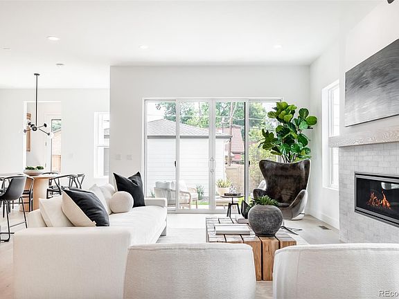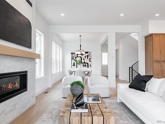 Designer details commingle with a coveted locale in this modern farmhouse. Perfectly poised in Sloan’s Lake, a covered front porch beckons residents into an open floorplan well-suited for entertaining. Handsome flooring flows easily underfoot complemented by high-end finishes throughout. A modern fireplace grounds a spacious living area with seamless outdoor connectivity to a covered patio in a peaceful backyard oasis. The home chef is treated to an impressive kitchen showcasing Thermador appliances including a 48-inch gas range and a sleek center island with seating. Situated beneath contemporary lighting, a bright dining area offers space for hosting dinner parties while an office affords a private home workspace. A luxurious primary suite is complemented by a spa-like bathroom with a walk-in shower and a soaking tub. Two sizable secondary bedrooms offer serene oases with large windows. Retreat downstairs to a finished basement featuring a fourth bedroom and a versatile media room.