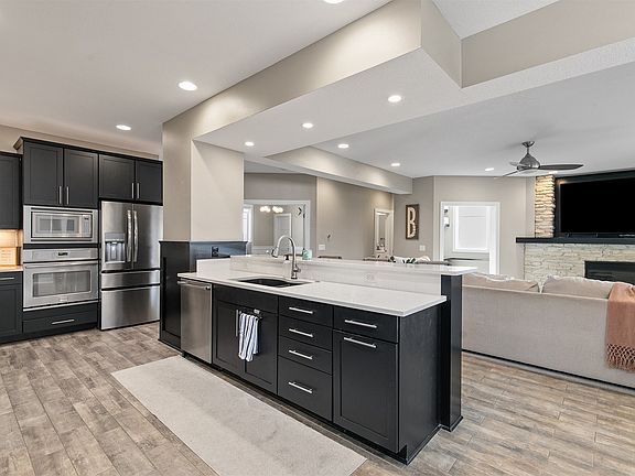 Every so often, a home comes along that truly stands apart. In the past 2yrs this home has been taken to an ENTIRELY NEW level! This 5-bedroom, 6-bath home offers nearly 4700sqft of finish plus a show-stopping outdoor retreat.The owners spared no expense transforming this home. Inside you’ll find an expanded main level w/ new 8x17 butler’s pantry featuring heated floors, a new 12x12 laundry/bath addition, & custom entry lockers. The chef’s kitchen stuns w/ commercial gas range & double ovens, updated lighting, new faucets, & fresh carpet throughout the main & upper level. The spacious primary suite offers a spa-like bath w/ jetted tub, tiled shower, dual vanities, & walk-in closet. Additional bedrooms include a Jack & Jill suite, a private ensuite, & convenient upper-level laundry. The lower level was built for entertaining; featuring a pool house addition w/ walkout access, two mini splits for comfort, a full bar & glass wine room. Outside & prepare to be amazed: 20x40 saltwater pool w/ diving board, slide, auto cover & lighting package, in-ground trampoline w/ LED lighting. Custom gas fire pit & $185,000 in landscaping & lighting. 22x16 three-season deck w/ exterior-grade tile & quartz counters. 4th-stall garage addition (16x23) w/ custom carriage door, high-lift clearance & gas heater; sized for golf simulator. Every improvement has been thought through & executed w/ precision. In a prime Clive neighborhood near Shuler Elementary, this is one you’ll have to see to believe.
