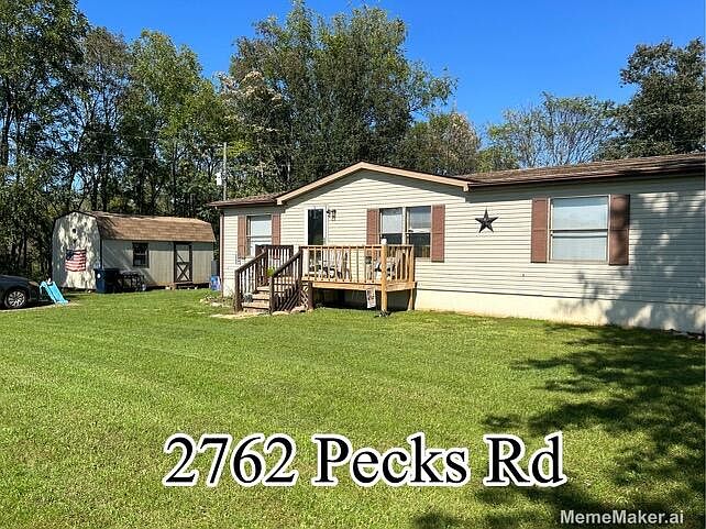 This home w/ a split bdrm design on 1.7 acres w/ a stream in a very pretty setting .Includes 2 storage buildings & a large 3rd building The back part of the property has a large board fenced area There is a spacious LR , kitchen w/ large dining area w/ all appliances remaining. There are 2 more bdrms & a full hall bath + the master suite w/ a walkin closet, barn doors to the full master bath, the large master bath w/ large tub & separate shower. Fresh paint in the living room.