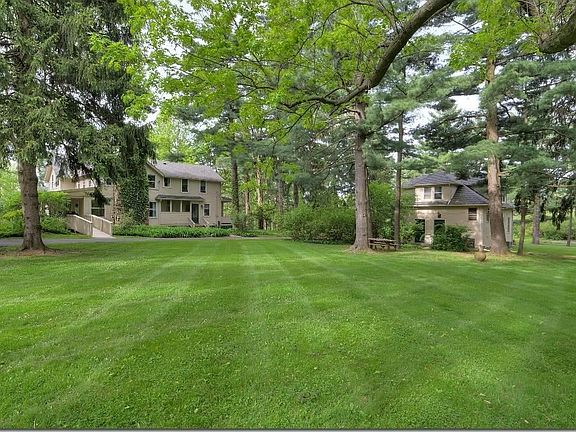 Distinctive stone and wrought iron fence sets the stage for this magnificent 4.21-acre property abutting the Pepper Pike Country Club and Pepper Ridge Development. This home also has the option of belonging to the elite Pepper Ridge Swim and Tennis Club. The property can also be subdivided into 2 lots if a buyer wanted. Fabulous 5200 sq. ft century home with walkout lower level. Carriage house on property with 2 bedrooms, living room, kitchen and bath above the 3 car detached garage. Elegant covered front porch and patio with pergola overlooks the enormous park-like yard. The 5 fireplaces & beautiful hardwood floors add to this charm-filled home that features a large living room, formal dining room, spacious family room, eat-in kitchen, newly added master suite with glamour bath, laundry room and screened porch all on the 1st floor. The 2nd floor features 4 additional bedrooms, craft room and 2 full bathrooms (bedroom #2 is en-suite). Huge walk-out lower level with recreation room(currently used as office) and the 4th full bathroom. Circular driveway and lots of additional parking.