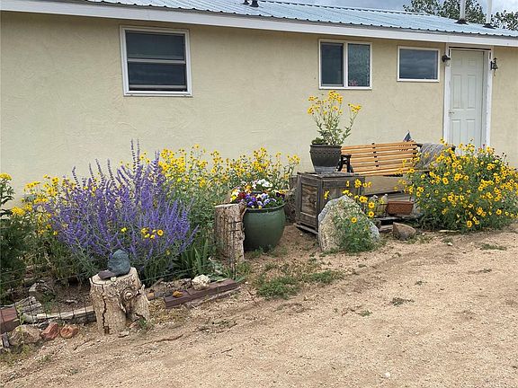 Come home to a piece of country living with phenomenal views of the Sangre De Cristo Mountain Range. Privately tucked away, the inside of this 2 bed, 2 bath, 1,113 sq.ft home has the convenience of main floor living with plenty of light throughout. If you need more privacy the primary bedroom with an attached bathroom has its own outdoor access to the backyard patio. This self-sustaining, highly energy efficient, south facing home comes equipped with updated solar equipment which produces electricity for all of your everyday needs. Stay cozy next to the woodstove on a cold night or let the baseboard heat keep you warm. On 35+ acres the well, along with the 1,500 gallon cistern, will allow you to maintain watering of the already established gardening terrace, trees, fruit producing trees such as apples & pears, a strawberry bush, and several fun colorful flowers. This well will also allow the watering of poultry, domestic animals and livestock. The big blue skies of the San Luis Valley are waiting to greet you with intense multi-colored sunrises, sunsets, and crisp views of the night skies. What are you waiting for? Located 11 minutes to Saguache (gas, groceries..etc), 36 minutes to Salida (gas, shopping, hot springs pool…etc.), 5 minutes to Joyful Journey Hot Springs, 1 hour to The Sand Dunes National Monument, and 50 minutes to Monarch Mountain Ski Resort.