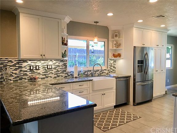 Honey Stop the car!! This is a home you defiantly don't want to miss. Prime Valencia location, single story, updated with an amazing view. Home features 4 bedroom 2 baths, gorgeous remodeled kitchen, stainless steel cook top, double stainless steel oven, lots of storage with pull outs, farm house sink, granite counter tops, dining area off kitchen all ready for holiday entertaining. Enjoy cool nights siting in your open living room with a cozy fireplace that is to die for. We all know living in SoCal we still have warm weather and if sitting outside enjoying a view is what you like we have that for you too. Once ready to turn in you will find a large master bedroom, also with a view, and a update private master bath. Now for all the good stuffHardwood floors, tile in kitchen and baths, Solar, recessed lighting, newer windows this one has it all. Now the only thing missing is you. When are you ready to move in?!