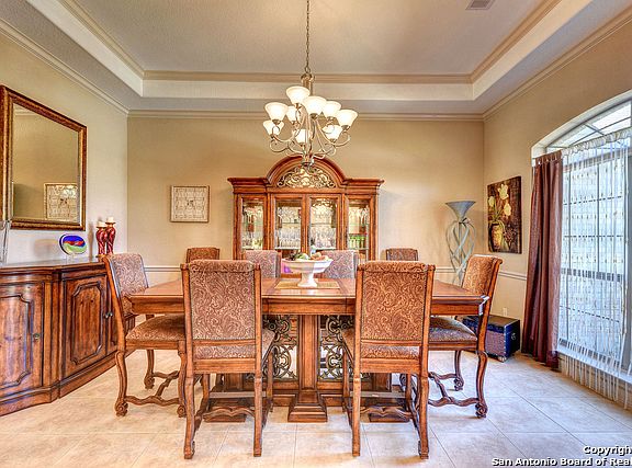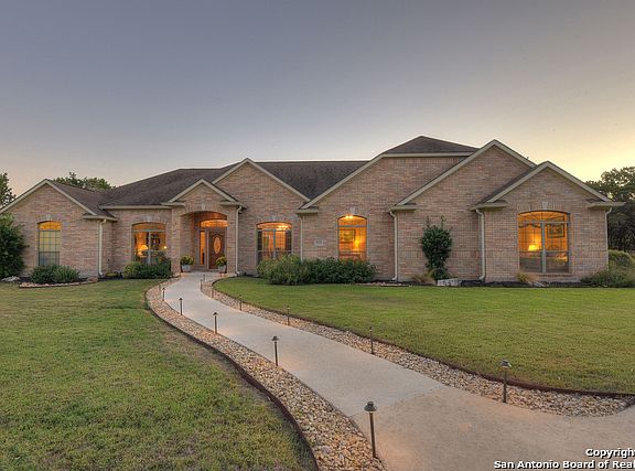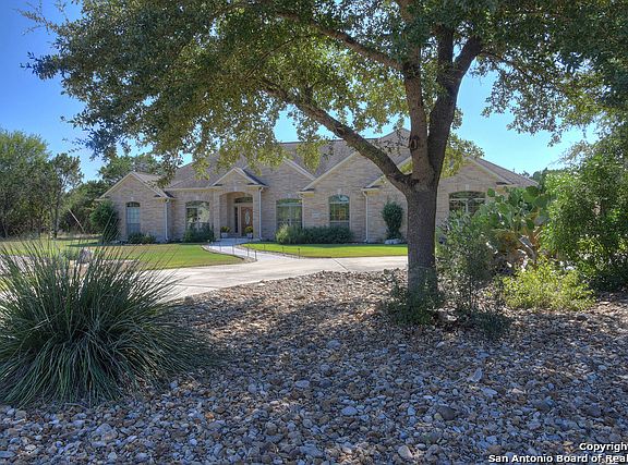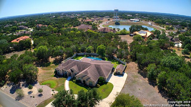 Meticulously maintained 1.5 acre hill country retreat w/ resort inspired backyard! Spacious covered patio overlooking inviting solar heated gunite pool w/ spa & water feature, lush landscape & masonry fencing. Huge eat-in kitchen beautifully appointed w/ tons of cabinetry, gas cooking, double ovens & more! Lovely Master suite w/ pool access plus 3 living areas! Three car garage features separate hobby room & permanent stairwell to attic w/ lots of storage. Outbuilding with sink & 15kW solar power on roof!