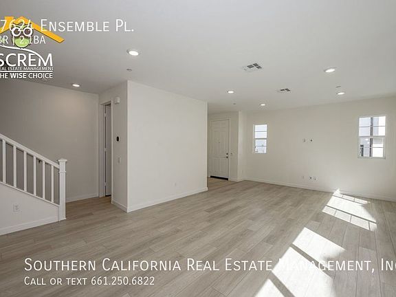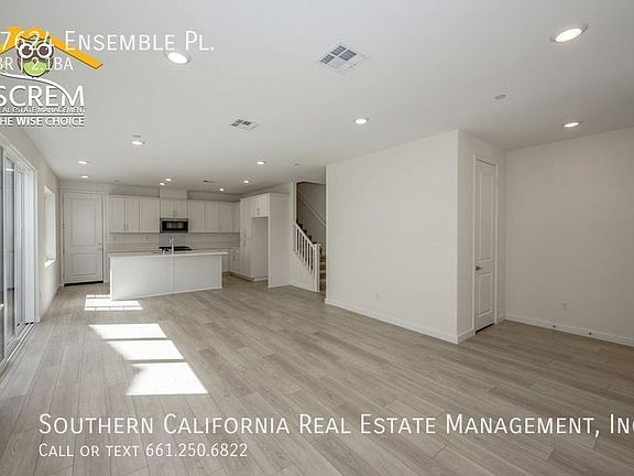 Beautiful townhouse featuring three bedrooms and solar in the desirable Five Point community. As you enter, you will find the open living room, dining area, and kitchen, all featuring vinyl plank flooring, recessed lighting, and a sliding glass door leading to the side patio. The kitchen is stunning with white cabinets, silver hardware, a center island with a breakfast bar, and stainless-steel Whirlpool appliances, including a gas stove, single oven, microwave, and dishwasher. There is also a half bathroom downstairs with a pedestal sink. Upstairs, you will find the primary bedroom with carpet flooring, recessed lighting, a walk-in closet, an attached primary bathroom with dual sinks, and an oversized walk-in shower. Additionally, the property features two guest bedrooms, one with a walk-in closet and the other with mirrored closet doors, as well as a full guest bathroom. The laundry room has a full-size washer and dryer and is located on the second floor. The property features an attached two-car garage equipped with an electric car charger and solar panels for enhanced energy efficiency and cost savings. Enjoy the wonderful amenities of the Five Point Community, including a swimming pool area with a spa, a wading pool, and parks. The community is conveniently located near the 5 freeway, shopping, restaurants, and a short distance from Magic Mountain. *Owner may consider small pets.