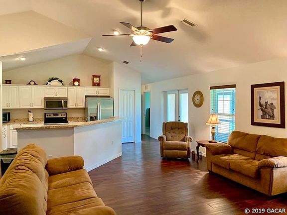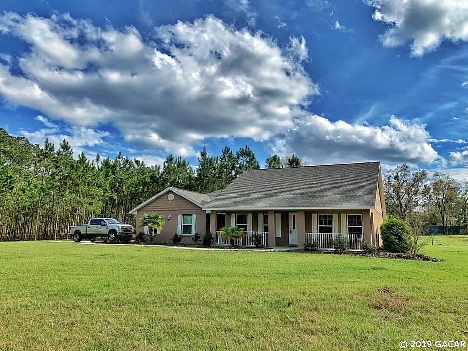 BEAUTIFUL CUSTOM BUILT HOME IN NEWBERRY - This 3/2 home was built in 2016 with over 1700 sq ft of living space. Home sits on nicely landscaped and well-maintained 5 acres. Extra outdoor living space including a front porch and screened back porch enclosure. A spacious kitchen that opens up to view the living and dining room with laminate countertops, breakfast bar, and stainless steel appliances. Wood plank flooring throughout common areas for easy clean-up. A large master bathroom with dual sinks and walk-in tile shower. Located just minutes from the city of Newberry, and a short commute into Gainesville for shopping, dining, and the University of Florida/Shands Hospital. Call today to schedule a private showing.