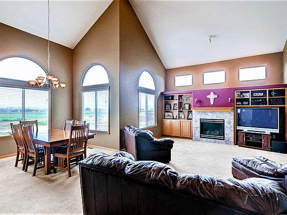 UNOBSTRUCTED MOUNTAIN VIEWS WITH NO NEIGHBORS BEHIND YOU! Spacious home in desirable neighborhood with room to grow. Main level master and laundry, vaulted ceilings, wood trim, modern kitchen w/stainless appliances, eat-in kitchen, cherry wood cabinets, pantry, separate dining area off kitchen, 13x13 loft area, situated on 1+ acre with an outbuilding & room for an additional 1000 sf bldg, 14 zone sprinkler system front & back. Backs to farm land and close to I25