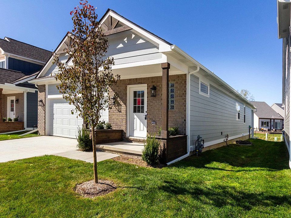 Move in ready New Construction 2 bedroom, 2 full bath Ranch home! VA/FHA welcome This beautifully designed New Construction ranch home is ready for you to move in and make it your own. Situated on a peaceful street, this property combines tranquility with modern living. Step into a thoughtfully crafted interior featuring soft-close cabinet doors and drawers, quartz countertops, and a large island—a perfect setup for both everyday meals and entertaining. The kitchen is complete with Luxury flooring and Stainless Kitchen appliances, creating a sleek and functional space. Enjoy the convenience of a 1st-floor laundry room and a large walk-in pantry for all your storage needs. The primary suite offers a private retreat with its own luxurious bathroom, while an open staircase leads to the spacious full basement, ready for customization. Outdoor living is a breeze with a covered back patio, perfect for relaxing or hosting gatherings. The 2-car garage adds additional convenience. This home comes with added perks: the monthly fee includes lawn service for each home and snow removal for driveways and main roads—ideal for easy living. Conveniently located close to freeways, schools, and shopping, this home offers the perfect blend of accessibility and serenity. Last ranch home available! Don’t miss out—schedule your tour today and step into your dream home