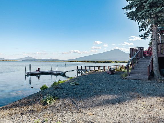Fisherman's Paradise!! Waterfront property on the Upper Klamath Lake with private dock on 2 acres. Located between Rocky Point Resort and Harriman Springs Resort and Marina and a short distance to Crater Lake. World famous fishing, birding, boating and unlimited outdoor activities year round. Enjoy the indoor/outdoor living from the wrap around deck with BBQ, fire pit, paddle boats, Canoe, Kayak, Side by side atv with snow plow and wildlife galore. Incredible views from every area of the property and house. Fully Furnished and beautifully updated 2448 sq ft home with 3 Bedrooms and 3 bathrooms. Light and bright Great room, Living room and Kitchen with tongue and groove ceilings. On snowy days, snuggle up by the fire in either of the living spaces. Breathtaking Primary en suite with heated flooring in the bedroom and bathroom, double vanity, soaking tub, custom tiled walk in shower and even the toilet seat is heated. Large upstairs bedroom with attached bathroom overlooking the lake.