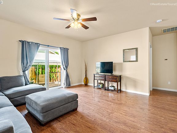 OPEN SAT & SUN 1-3PM!Darling one level home at the end of a quiet street. High ceilings & an abundance of natural light are featured in the open concept living rm w/slider out to a nice patio area. Beautiful kitchen boasts large island w/eat bar, pantry & lots of cabinetry. Cheerful dining space w/room for your farm table. Master suite w/step-in shower & nice closet. Laundry rm w/sink & shelving. Easy care laminate flrs throughout. Fenced backyard & w/space for your raised beds & play structure.