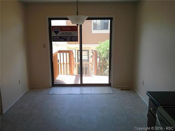 End unit townhome, nestled near woods with scrub oak, close to the pool house and Village Seven Trails system. Nearby shopping, medical facilities, fire department, and close access to Academy Blvd. HOA fee covers common utilities, exterior maintenance & insurance, lawn care, and snow & trash removal.All NEW flooring throughout.. NEW paint, water heater, and updated kitchen & bathroom sinks. Roof replaced in 2012. Has a fireplace stack, so a fireplace could be added, confirm with your inspector. Crawl space throughout the unit and external storage closet. Swamp cooler system and AC unit(working condition unknown on AC). Microwave and Washer & Dryer will be left for new owner. Covered carport near rear entrance to unit. Exterior paint scheduled in the community(2016). Priced to sell, so it wont last long. Please call before submitting an offer.