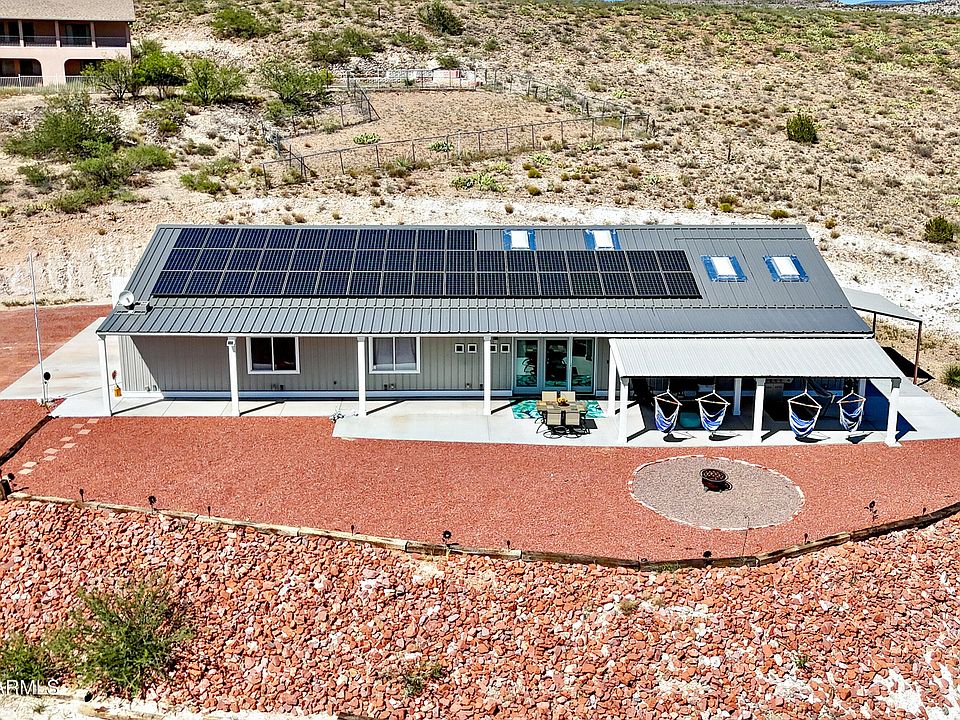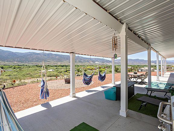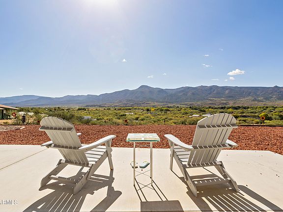 Newly built desert ranch beauty with sweeping Verde Valley views. This stunning 3 bed, 2 bath home offers the perfect blend of modern comfort and off-grid capability. Built with a durable steel frame & metal siding, designed for low maintenance and long-lasting quality. The property features a private well, solar power, and a water catchment system, giving you energy independence-all without the burden of an HOA. Inside, an open floor plan creates inviting living spaces filled with natural light-perfect for entertaining. The master suite includes a thoughtfully designed large closet with convenient washer & dryer access. Set on 2 peaceful acres, you can enjoy serene mornings on the covered porch, unwind under the stars in the hot tub, & take in the panoramic beauty of the Verde Valley.