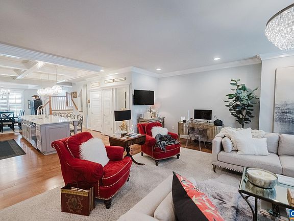 Thoughtfully designed with incredible attention to detail, this elegant Out of Bounds townhome features triple crown mouldings, tray and coffered ceilings, wainscoting, a waterfall staircase and plantation shutters throughout. Meticulously maintained, this open floor plan offers an abundance of natural light and flows seamlessly from one living space to the next. Beautifully designed custom built-in dining room cabinetry, an oversized kitchen island, hardwood floors throughout and an expansive living room featuring a stunning custom fireplace are just a few of the noteworthy design elements of 2763 Town Mews Lane. This four bedroom, four and a half bath townhome includes a first floor ensuite bedroom/office, third floor primary suite with oversized custom closets and large tile shower, an additional third floor ensuite bedroom overlooking the private green space, a laundry room with ample storage and a fourth floor ensuite bedroom/studio with a marble countered wet bar, refrigerator, ice maker and adjoining sun deck with a gas grill. The elevator conveniently accesses all four floors and the double car garage includes a NEMA 6-20 dedicated circuit for EV charger.