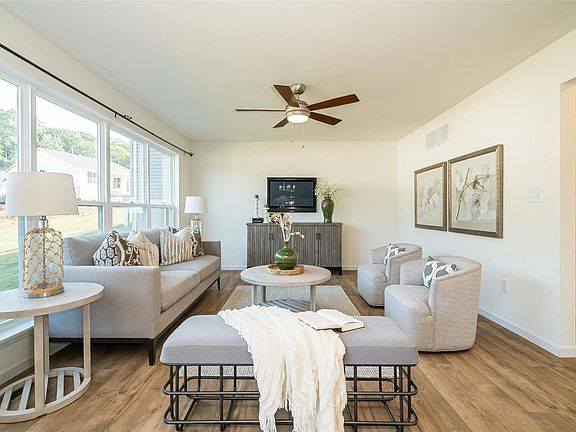 Why wait for new construction? This nearly one-year-old McBride Royal II home is move-in ready. The 2-story foyer welcomes you and leads to the formal dining room. The open floor plan is perfect for gathering with family and friends. The kitchen features stainless appliances, ample counter space, and plenty of cabinets for storage. A center island offers additional workspace and doubles as a breakfast bar. Connected to the kitchen is a breakfast room, featuring a sliding glass door that leads to the composite deck. This allows for easy access to outdoor dining and enjoyment of the backyard. The family room provides a comfortable space with a scenic backyard view. Upstairs, you'll find the four bedrooms and two full bathrooms. The master bedroom is generously sized, featuring a walk-in closet and an en-suite bathroom complete with a large shower and double vanity sinks. The remaining three bedrooms are well-proportioned, ideal for children, guests, or home offices
