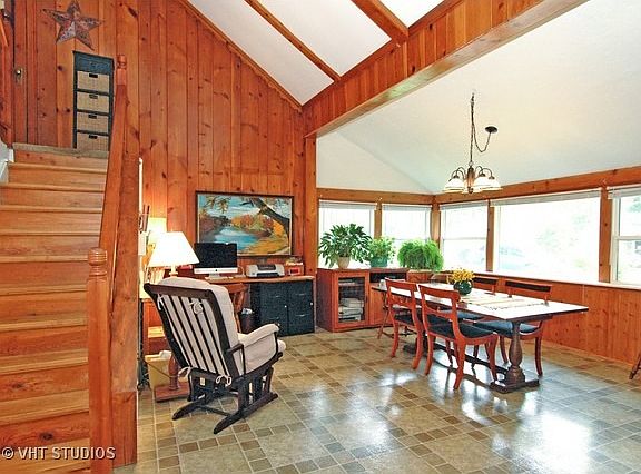 Stunning and classic home that''s only steps away from Slocum Lake and all it has to offer! Large entry way with huge closet! Lovely, remodeled kitchen includes a newer maple cabinets, eating space and not 1, but 2 sinks...one a timeless farmers sink with side aprons! GREAT for gardeners! Vaulted ceilings grace the main areas and the dormered windows bring in lots of light! Relax by the fireplace and it''s lovely brick hearth! Admire the stylings of the knotty pine paneling that show off the cottage feel of this home! The large dining room can double as office space! The family room overlooks the back yard! 1 large bedroom and full bath on the main floor and 2 more beds and a bath upstairs! Amazing front porch to sit in a rocker and watch the world go by! Deck with Sunsetter awning off the back to admire the gorgeous perennial gardens...lovely colorful flowering plants with low maintenance! Detached 2 car garage and pergola. All this is completed with lovely curb appeal! COME QUICKLY!