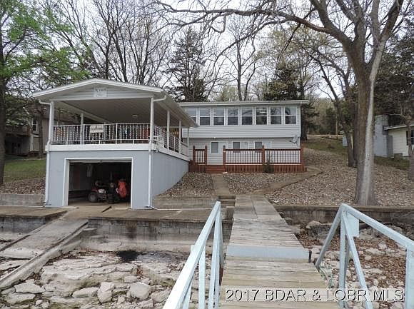 This is the perfect lakefront home. This three bedroom one and a half bath sits on two lots with tons of parking and 2-two well docks. This home has been remodeled from the ground up with updated electric, updated plumbing, a metal roof and windows. You can entertain on the lakeside covered patio and have room for everyone to park. Enjoy the gorgeous main channel views from the mouth of Indian Creek Cove. Fish from either of your docks (with crappie beds) or just kick back and enjoy the Lake Life. Parking at the front door with no steps in and 2 steps down to the dock. This is your chance to have your dream home at Lake of the Ozarks.