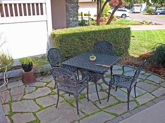 Very nice single level home in convenient location in North Eugene. Great condo alternative with a nice backyard and no monthly dues. Many updates done including Alchemy Copper tile floors, granite counters, hardwood floors. Vaulted ceiling in living room, forced air and heat pump, walk in closet in master bedroom, private back deck, underground sprinklers, alarm system, indoor utility.