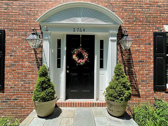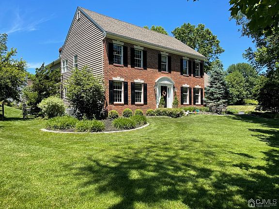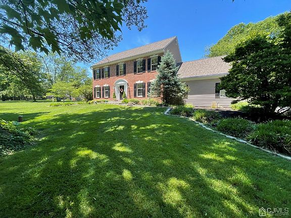 Majestic full brick front 4 bedroom colonial on almost an acre in the sought after Hunters Crossing neighborhood of Buckingham Twp. Beautifully manicured expansive lawns all around the home, with mature trees and landscaping. All hardwood floors on main level. 2-Story foyer. Well lit and spacious formal dining room. Living room currently purposed as an office with custom built-in bookcases. A charming and updated chef's kitchen with granite countertops, a 5 burner gas range, stainless steel appliances, breakfast bar and breakfast area. Built in pantry cabinets. Family room with wood burning fireplace, French doors to a multi-tiered deck, leading to the backyard. Tastefully done mud/laundry room with built-in cabinetry and cubbies for organized storage. A warm and welcoming main bedroom is adorned with another wood burning fireplace, built-in book cases, sitting nook by a bay window. Attached full bath has a skylight, double vanity, stall shower and large jetted tub. Remaining bedrooms generously sized, with ample closet space. Finished basement with enough room for a recreation area, exercise area, etc. Lots of storage in unfinished section. Roof 2013. New bluestone walkways in front and back yards 2021. House, attic and basement spray foam insulation 2020. Near major routes, elite dining, shopping and recreation areas.