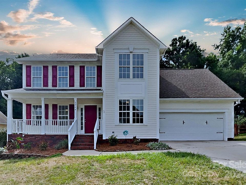 Welcome to your beautifully updated dream home. New: Carpets throughout, refinished hardwood floors, and professionally painted. You’ll fall in love with the rocking chair porch, huge great room & cozy fireplace. Updated kitchen with premium granite countertops and stone tile backsplash, new dishwasher and 2 pantries! Main floor flex room is ideal dining, work from home office or playroom. Escape to the spacious owner’s suite with large walk-in closet & private bath with dual vanities, garden tub & shower. Imagine dinners & entertaining on your large deck overlooking the private fenced yard perfect for gardening, entertaining, or simply basking in the tranquility as you enjoy a bon-fire. Storage shed. Riverwalk neighborhood has easy access to I-85, I- 485, Concord Mills, Charlotte Motor Speedway & Concord Regional Airport.