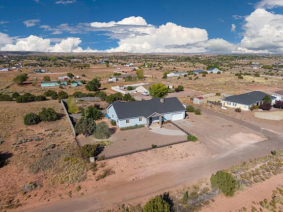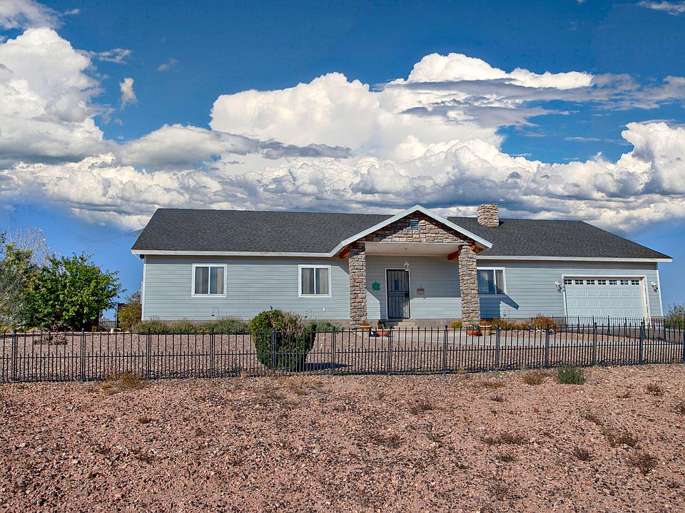 Looking for a beautiful home within city limits but a good distance out of town? A home with gorgeous long range VIEWS? How about no HOA?! If that's something that interests you, this home on 1.04 acres, 4 bedrooms, 2 bathroom, 2 car garage, 2552 square feet & lots of storage space is the home for you! It gets better... the massive kitchen includes an ample amount of storage, lots of counter space, double oven and an island with a breakfast bar. The large formal dining room is perfect for entertaining guests and even has a built in office nook. Oversized laundry room off of the kitchen. The master bathroom has a large walk in closet & walk in shower. There is a 13'11 x 15'6 foot heated work room off of the garage. (Continued)