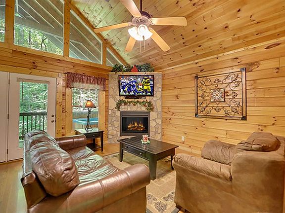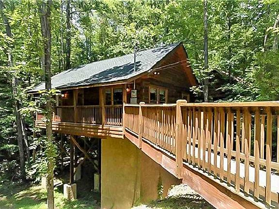Lovely cabin nestled in the woods over a creek. All one level true log cabin just minutes away from all the area has to offer. Relax by the fireplace or in the Hot Tub while listening to the creek. Perfect for the vacation home or overnight rental with well established rental history.