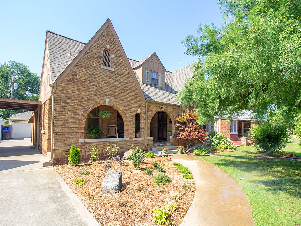 Contact Listing agent Angela Matlock 405-520-8963 This charming Tudor home has been restored to it's former glory. The outside features wonderfully maintained gardens, large covered front porch, updated fencing, garden pond and private backyard patio. a rare 3 car garage. In addition the current owners built a 750sq foot bottom floor apt back of garage which is outfitted to be handicap accessible with full kitchen, bath, laundry, one bed and living room. Inside features 2 floors plus laundry room basement. Hardwood floors and wood frame windows which are stained (unpainted). Beautiful arches, period mock fireplace. Newer solid oak kitchen cabinetry, granite, and appliances. Downstairs has living, formal dine, breakfast room, kitchen, 2 bedrooms, 1 bathroom, and a combined office and 2nd living. Upstairs has a landing/office space plus large bedroom and private bath with lots of storage. Cleveland Elementary!
