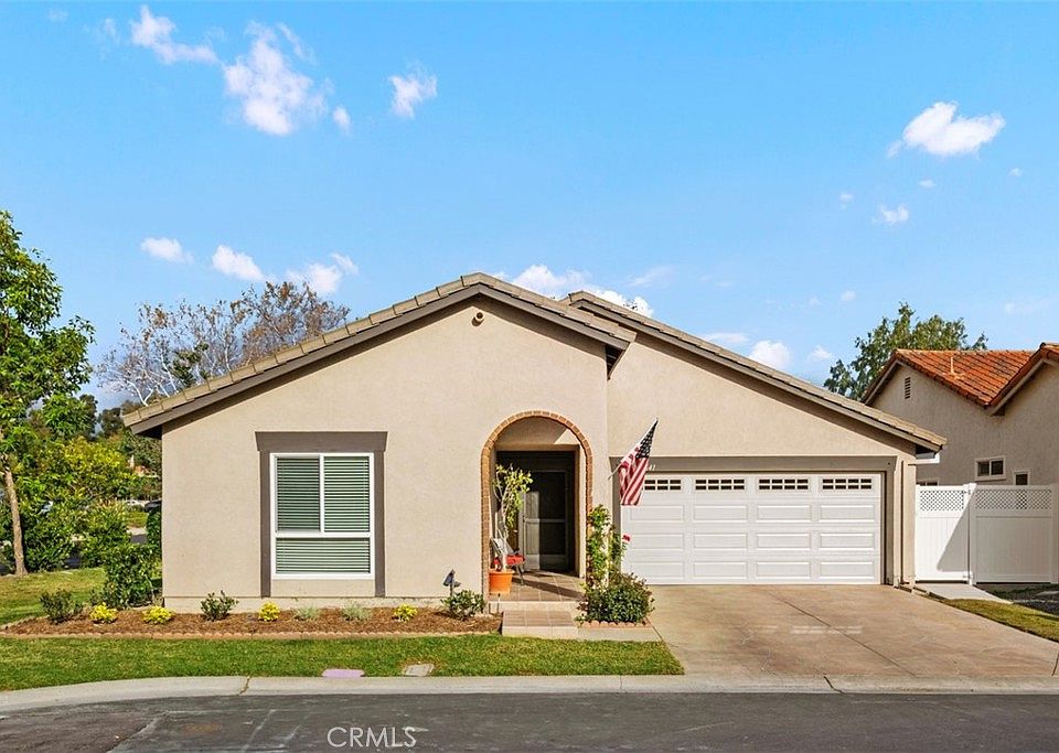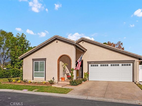This charming 2 bedroom/2 bathroom, highly desired Violetta floor plan home is private, quiet, located at the end of a cul-de-sac, close to the guard gate and just a stone's throw to the recreation center and all of the wonderful community amenities offered there. Step inside the home's foyer to the spacious, light and bright living room complete with vaulted ceilings and brick fireplace. The kitchen is functional, and well equipped, with an eating nook, new solid surface quartz counter tops, stone backsplash, Kohler sink, new dishwasher and microwave. a large formal dining room and outdoor patio space are ideal for entertaining family and friends. A roomy, and light filled, master suite boasts vaulted ceilings, new plush carpeting, mirrored closet doors, a new bathroom vanity with dual sinks, white quartz counter tops, new tub with subway tile walls, and luxury vinyl flooring. Across the hall is the secondary guest room/office space and a secondary bathroom with walk in shower. Both bathrooms include grab bars in the showers. An attached two car garage holds the laundry area, work bench and crawl space (with pull down ladder) for extra storage. Extra features of this home include new interior paint, new water heater, new HVAC system, new double paned vinyl windows and slider door, new patio cover, and new exterior painting (per HOA) scheduled for 2023. Casta del Sol is a beautifully maintained and landscaped, guard gated, 55+ community encompassing close to 500 acres. The community offers two recreation areas that include parks, pool, spa, lawn bowling, shuffleboard, club house, gym, a quaint community garden, and so much more! Walking, hiking and biking trails, golf, library, shops, restaurants and freeway are close by as well as Lake Mission Viejo and all that the lake association has to offer. This community is an absolutely lovely place to live and this home is a must see!
