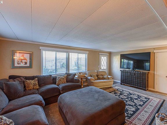 Beautifully updated home in an all age family park with low space rent! This home features 2 bedrooms, 2 full baths and an extra office room. Double pane vinyl windows throughout home, as well as new paint, shutters, and porch. The back porch has a covered area, and the extra large lot features 2 sheds and lots of raised beds. With a few finishing touches the large shed in the back of the lot can be a perfect art studio! Lots of bushes and trees planted! Home is financeable through a personal property loan. Come see what this property has to offer!