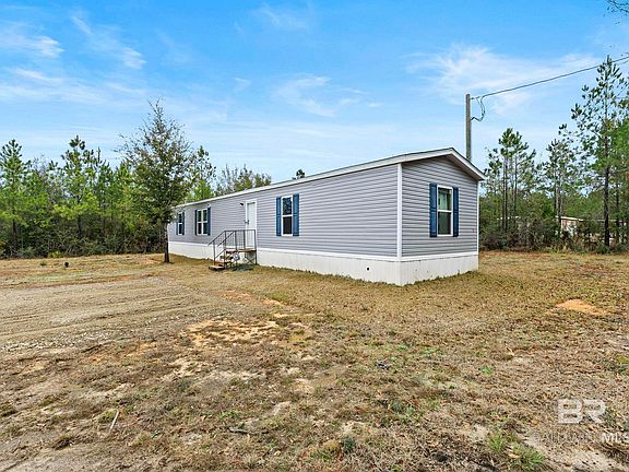Welcome to this RARE AND AFFORDABLE PROPERTY in Baldwin County, Alabama: 3 ACRES AND A 2022 MOBILE HOME. YOU ARE ALLOWED TO HAVE ONE ADDITIONAL DWELLING ON THIS PROPERTY, whether it be a tiny home, RV/Camper, mobile home, barndominium or your future dream house. This home is perfectly designed for modern comfort and country living. This charming farmhouse-style home offers three bedrooms and two bathrooms, providing ample space for you and your family to live and relax. The home has all new appliances, kitchen island, spacious bathrooms, large primary bedroom that fits a king size bed and tons of charm. Nestled on a spacious 3-ACRE LOT, you'll have all the space you need for outdoor activities, gardening, or simply enjoying the tranquility of the countryside with the large food plot. Avoid all the costs of raw land with a move-in ready home and lot. All utilities have been setup, to include: power, well water and a brand new septic tank system. The property has been cleared of additional trees to allow you to enjoy the future use of the land. This property is a true gem for those seeking thepeace and serenity of rural living. You can live in the country but still be within a quick 15 minute drive into town. Don't miss the opportunity to make this spacious property your new "Home Sweet Home". Buyer to verify all information during due diligence.