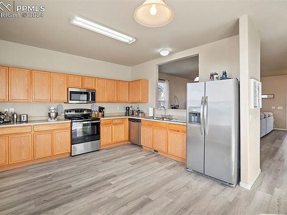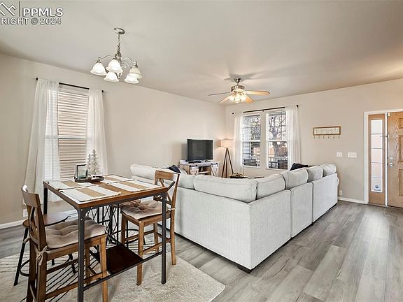 Two-Story Townhome in Perfect Condition! This home features three Bedrooms, three Bathrooms, new carpet, new main level flooring, fresh interior paint, is an end unit, & move in ready! Conveniently located near shopping, dining, parks, I-25, and Ft. Carson. Large eat in Kitchen with stainless appliances and plenty of cabinets & counter space. Light and bright Living Room w/ ceiling fan. Large Master Bedroom with vaulted ceilings, ceiling fan, walk-in closet, and an adjoining Master Bathroom. New a/c* Open space w/ views from rear of home *Light & bright lage living room w/ ceiling fan. Don't miss this gem!!!