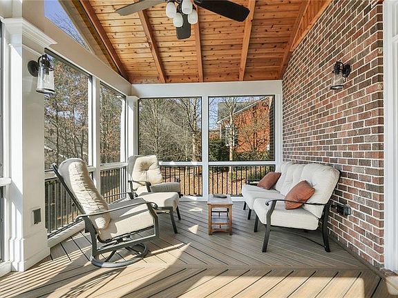 You will love this beautiful end unit townhome with its incredible screened porch on a private lot, surrounded by green space. It's open, flowing floorplan features neutral colors and hardwood floors on the main level and upstairs. Enter the charming foyer that leads to a sun-filled great room with French doors that open to huge screened porch with trex floors a vaulted cedar ceiling. Entertain in the large kitchen and formal dining room. The Master suite has a Juliette balcony, spa bath and spacious walk in closet. Down on the terrace level the rec room can be a 3rd bedroom and there is abundant storage space. Academy Park is an amenity filled, gated community, and is walking distance to downtown and Avalon