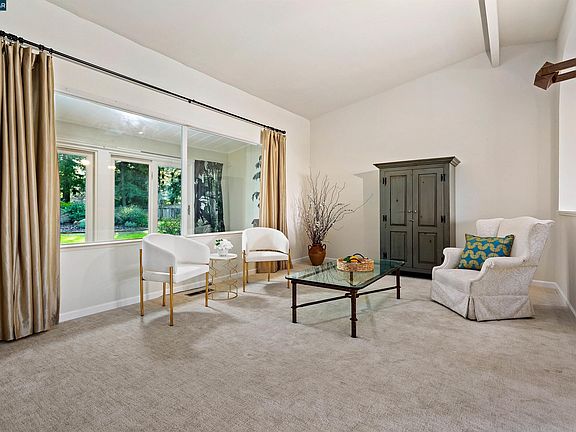 Welcome home! This beautiful square foot single story on a acre lot, traditional style home is the perfect package with hardwood and stone tiled flooring, newly installed carpet, formal dining & living rooms, eat in kitchen, owned solar and a spectacular back yard including multiple seating and entertaining areas, lush landscape and hot tub. Walking into this beautiful home, you are welcomed in by an impressive foyer leading into the living room with vaulted ceilings and a wall of windows overlooking the gorgeous backyard. An open concept dining room flanks the living room with stone tile flooring and bright and open windows making this a perfect place to dine and entertain guests. The generous kitchen comes complete with tons of counterspace, plenty of cabinetry and a spacious pantry, electric oven and stove, large refrigerator and large window flooding the room with natural light, making cooking, baking, and entertaining a delight. The intimate primary suite is spacious and bright with sliding glass doors offering private access to the stunning backyard and hot tub, newly installed carpeting and two separate closets. The primary bathroom comes complete with double vanity, stone countertops and built-in cabinets and a lovely garden window. The split bathroom also boasts an