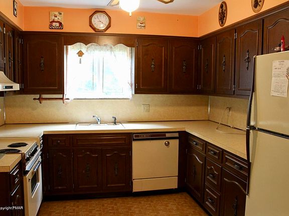 Looking for privacy and convenience? Whether you are seeking a first home or a Pocono getaway, this home will be your top choice! Home is very private and boarders 968 acres of State Gamelands, so you can literally walk out your door and hike, hunt or snowmobile! Truly one of a kind rustic, quaint home minutes to Route 80 yet tucked in the woods! Home has 3 bedrooms, 2 baths and a huge basement that just needs the finishing touches. Garage is currently storage but can be a workshop or car garage again! You will love chilly evenings by the brick fireplace or the outdoor fire pit! Possibilities are endless with this 3 acre property!