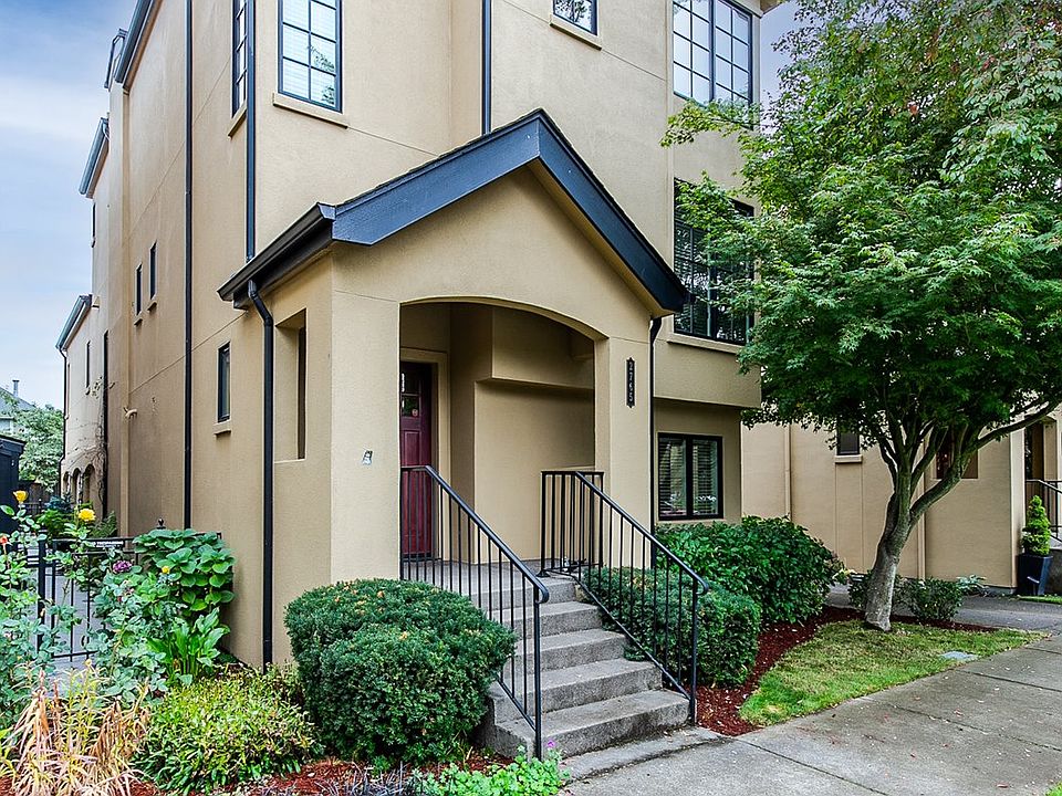 Urban living at its finest featuring cathedral & vaulted ceilings with light filled rooms. Gorgeous living area with hand scraped stunning maple floors, gourmet kitchen with granite counters, SS appliances and large island. High end finishes throughout. Upper level primary bedroom with en-suite. Superior covered outdoor area for relaxing, BBQ or reading. Simply a stunner! Go to the end of the street and check out the new city park that's being built.
