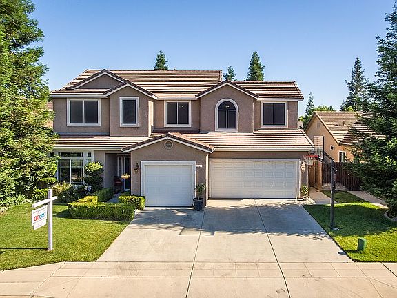 A lovely 2-story Spencer built home in Clovis, with a fenced pool featuring a sheer waterfall and toddler area. Also included in the backyard are 2 covered patios, dog kennel, small vegetable garden, and two separate grassy areas on each side of the walkway to the pool. Formal living and dining rooms, and family room downstairs. The kitchen has granite countertops, a breakfast bar, and opens up to a nook with French doors. All 4 bedrooms are upstairs, in addition to a loft that has built-in shelves. The large master bedroom includes a private sitting area. The home includes dual zoned heating and air conditioning, along with a whole house fan, solar screens, and ceiling fans throughout to keep cool in the Valley heat. Mature landscaping front and back yard. Large redwoods in the backyard and front yard add extra privacy. Come by to see this fabulous house!