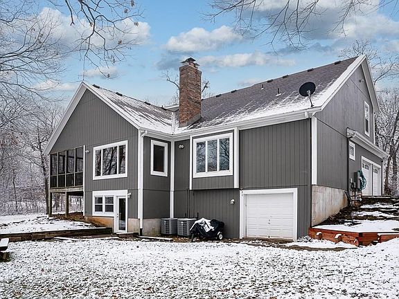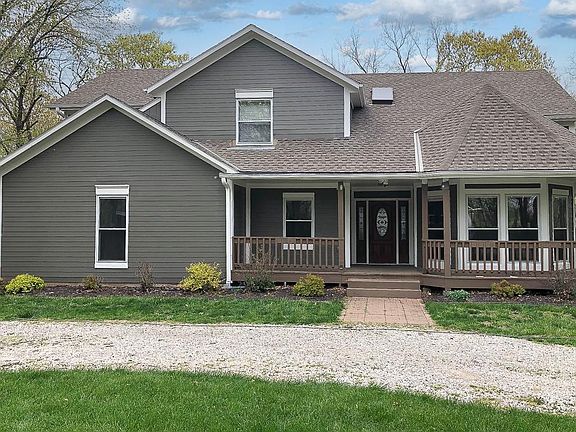 ESCAPE TO TRANQUIL LUXURY ON 5 ACRES: A 5-BEDROOM, 4.5-BATH HAVEN! Embrace the harmonious blend of rural serenity and modern amenities in this captivating 1.5-story home, poised on a picturesque 5-acre wooded lot. Country living at its finest, with the convenience of city amenities, defines the essence of this enchanting residence. Step into a world of comfort with the master suite on the main level, boasting a walk-in closet and a spa-like bath, complete with a spacious walk-in shower adorned with a rejuvenating rain shower head. The heart of the home is the delightful kitchen, featuring an island, granite counters, a pantry, and a vaulted breakfast room. The expansive great room, with its vaulted ceilings and a wood-burning stove, exudes warmth and character. Outdoor living is perfected with an enclosed deck and a welcoming wrap-around porch, creating spaces to relax and relish the surrounding natural beauty. Three bedroom suites await you upstairs, offering both privacy and comfort. The walkout basement unveils a haven of entertainment, comprising a family room, game room, wet bar, an additional bedroom, and a third garage. An added safety feature is the whole-house sprinkler system, ensuring peace of mind in every corner of this remarkable retreat.