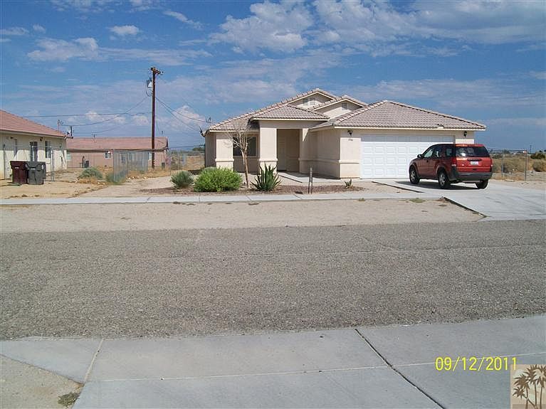 100% financing available!!! AGENTS 4% commission! This is a beautiful all electric, (no propane)and on sewer, 4 bedroom with 2 full baths. Stove, microwave, d/w, and garbage disposal are included. White tile counters and a spacious eat in kitchen area, with slider to back yard. (3) ceiling fans and a HUGE built-in wall area that will hold even a 60 plasma...washer/dryer area in garage hall with storage cabinets. Vertical blinds throughout. House has been freshly painted and has new carpet, ready to move in! Completely fenced and front yard is desert landscaped with sprinkler system. 2 car garage with auto opener. This is not an REO or foreclosure, no waiting, can close escrow quickly.....