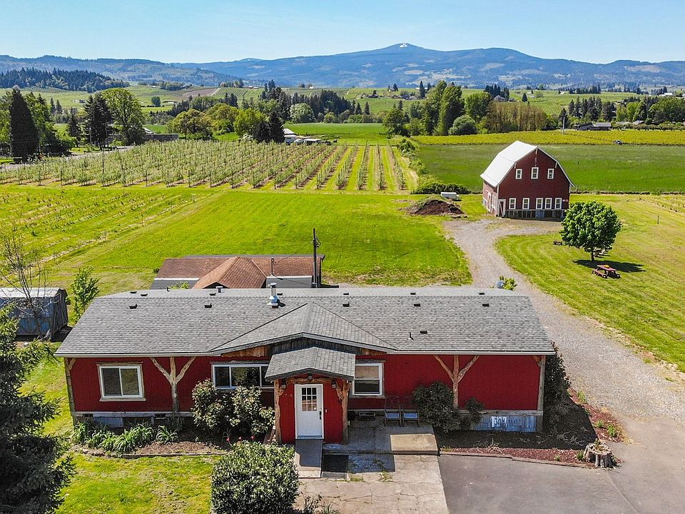 This perfectly placed property is just waiting for you to live out all your Hood River Valley dreams. Welcome to 2766 Eastside Rd, a lovely 3-bed, 2-bath home nestled in one of the Gorge's most sought after scenic locations. With an already established blueberry hobby farm, this home sits on 8.71 acres of flat land and offers breathtaking double mountain views. Inside, the home features an inviting living room with large windows that let you soak in all the natural beauty. Gather everyone for dinner in the charming dining area just off the well-appointed kitchen, complete with ample counter space. The home's 3 bedrooms offer plenty of space for rest and relaxation, with each room featuring large windows that provide plenty of natural light.In addition there's a large bonus space that could be used as a home gym, extra family room, or whatever your heart desires. The charmingly rustic sunroom is the perfect spot to set up your home office, indoor plant garden, or art studio. Outside, the home features a lovely backyard with plenty of room for outdoor activities. This property also provides the perfect opportunity to establish your own hobby farm. There is plenty of extra gear and toy storage in the garage/workshop. The functional and classic red barn offers even more opportunities for equipment storage or additional hosting space. The opportunities are truly endless with this rare gem.