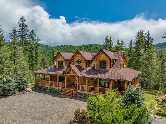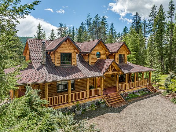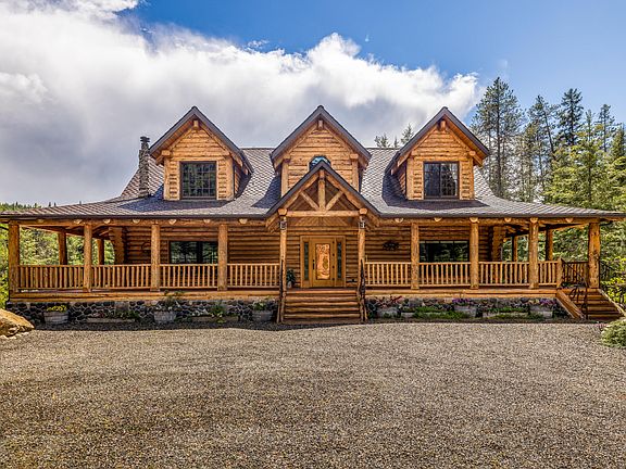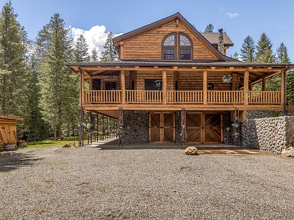 Stunning Custom-Built Log Home on 30 acres with a western town vibe and its own trout stocked pond! 3 full levels. You'll appreciate the great room concept with the open kitchen, 3 bedrooms, 2.5 baths, main floor master suite with jetted tub, radiant floor heat, central vac and a screened in deck with the most incredible views! Property is already set up for horses with corrals, stables and pasture. Complete with a 6-car garage, machine shop and 1200 sq. foot guest home and so much more. This is a true recreational paradise with several lakes, rivers and the Colville National Forest right outside your door. This property is perfect for an air b&n, event venue or... the possibilities are endless!