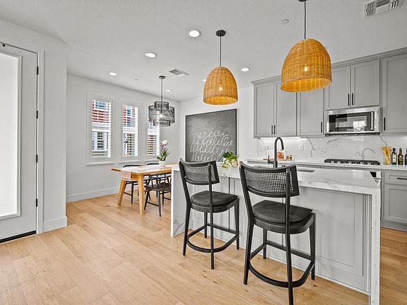 This almost new plan-4 Sea House is loaded with luxurious upgrades, has a balcony and is situated on a premium corner lot. The home is in pristine condition from beautifully engineered hardwood flooring to soft-close cabinets and drawers throughout. The kitchen is a stunning success with top of the line KitchenAid appliances, waterfall island with quartz counter-tops and full backsplash, dove gray cabinetry with upgraded hardware, under cabinet lights, six GFI outlets on the backsplash, basket weave pendants, upgraded plumbing fixtures, and an undermount Kohler Vault sink for easy cleanup. Architecturally, the smart home styling is modern and bright with square edge interior walls, frosted front and side yard doors, upgraded baluster handrails, abundant LED recessed lighting with dimmers, whole house fan, 3.15 kW solar (owned), Culligan soft water (owned), shutters and blackout blinds, and a sensibly finished and usable south-facing side yard. The nearby Shopping Centers includes restaurants, cinema, two fitness centers, one with pools, retail, and Trader Joes. Walk to the beach to view migrating whales and 900 acres of scenic coastal dunes, or hop on your bike to head down the nearby bike trails. Request our Features List for details of all the upgrades.