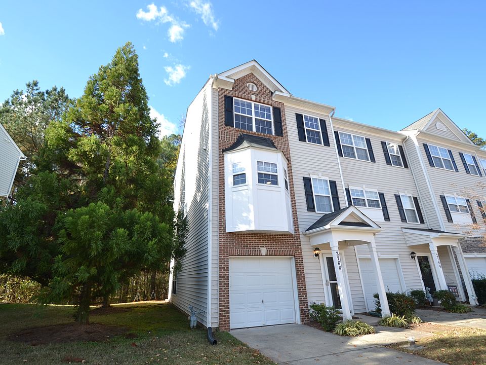 This fantastic end-unit townhome is located in a fabulously-convenient south Durham location that makes it convenient to RTP/RDU, downtown Raleigh, downtown Durham, local schools, parks, greenways, restaurants/retail, HWY 70, I-540, Brier Creek and much more! 2766 Wyntercrest Lane is available for immediate occupancy and is sure to please. Upon arrival, you'll be greeted by a long, private driveway, an attached garage and a covered front porch. Once inside, you're welcomed by a light-filled and expansive floorplan with room in all the right places. The foyer opens on the right to a coat closet and a staircase that leads up to the 2nd floor. Heading towards the rear of the home, you'll next pass by the interior garage access on your left and another closet on your right. At the end of the hallway, you'll find yourself in a massive bonus/flex room that could be put to use in a myriad of different fashions. This space includes tall ceilings, a double picture window, direct access to a covered rear patio and plank flooring throughout. The possibilites of this space are truly endless; imagine the home office, media room, or dedicated exercise space that you've always wanted! This property continues to impress on the 2nd level. Here, you'll be greeted by an inviting open-concept living area that works perfectly for today's lifestyle. The kitchen showcases gorgeous granite counters that accentuate maple upper and lower cabinetry adorned with crown molding. The kitchen also features tiled flooring, a large island with an integrated breakfast bar, a spacious pantry, a double-bowl stainless-steel undermount sink with a huge bay window housing 3 windows, and a suite of sleek appliances (including a smooth-top oven and a refrigerator with ice and water in the door) to round-out the kitchen experience. Next to the kitchen is a perfectly-proportioned dining area with double picture windows and a design that serves to interconnect the kitchen with the family room. Speaking of the family room, this will surely be a place in which you'll enjoy spending time. A cozy gas log fireplace serves as the focal point of this room where you'll also find Brazilian cherry flooring, a ceiling fan/light and direct access to an elevated rear deck overlooking a wooded buffer out back. Next, take a quick jaunt to the top floor to visit all three bedrooms as well as a conveniently-located laundry center complete with washer/dryer included. Never again will you have to haul laundry up and down the stairs! Towards the rear of the home is the primary suite that boasts a vaulted ceiling, double picture windows, a walk-in closet and a luxurious en-suite bathroom with dual sinks atop a marble-topped vanity, a garden tub, a walk-in shower and even a water closet! Not to be outdone, bedrooms #2 and #3 are also generously-proportioned and offer lovely natural light, ample closet space and easy access to a full hall bathroom with a marble-topped vanity and a tub/shower. Property Features Availability: Available for immediate occupancy Lease Term: 12 and 24 month lease terms available Pet Friendly: Owner will consider 1 dog 30# or smaller OR 1 cat. Pets must be neutered/spayed, no puppies or kittens, additional $300 security deposit required. All Appliances Included: Rent includes washer/dryer/refrigerator for resident's use Attached Garage: Enjoy the security and convenience of an attached garage with direct interior access No Yard Work: Take back your weekends! Rent includes year-round lawn and landscaping maintenance Limited Carpeting : The 1st and 2nd floors boast hardwoods, plank flooring and tile throughout! We do not advertise on Facebook or Craigslist