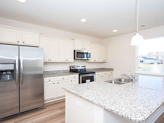 Ready for move in! This Galen plan home offers 4 bedrooms plus a flex room. Large owner's suite with dual vanities and 5' shower in bath. Nice, open flow between kitchen and living areas is great for entertaining around the large kitchen island. Low maintenance vinyl plank flooring gives the look of wood with easy care and cleanup! Granite counters in the kitchen, stainless Frigidaire appliances. Bathrooms have cultured marble countertops with undermount sinks. Covered rear porch for outdoor living space looks out over the water. Low community HOA fees. Be the first to live in Meridian at Market Common. The Meridian will offer 200-300 new homes, featuring 8 floor plans both ranch and two story homes. We are the price-leader for single family homes in Market Common! Our home owners will enjoy a gracious pool, air conditioned pickle ball court/meeting area, walking trails and a short golf cart ride to the beach. Live like you're on vacation! Home and community information, including pricing, included features, terms, availability and amenities, are subject to change and prior sale at any time without notice or obligation. Square footages are approximate. Pictures, photographs, colors, features, and sizes are for illustration purposes only and will vary from the homes as built. Equal housing opportunity builder.