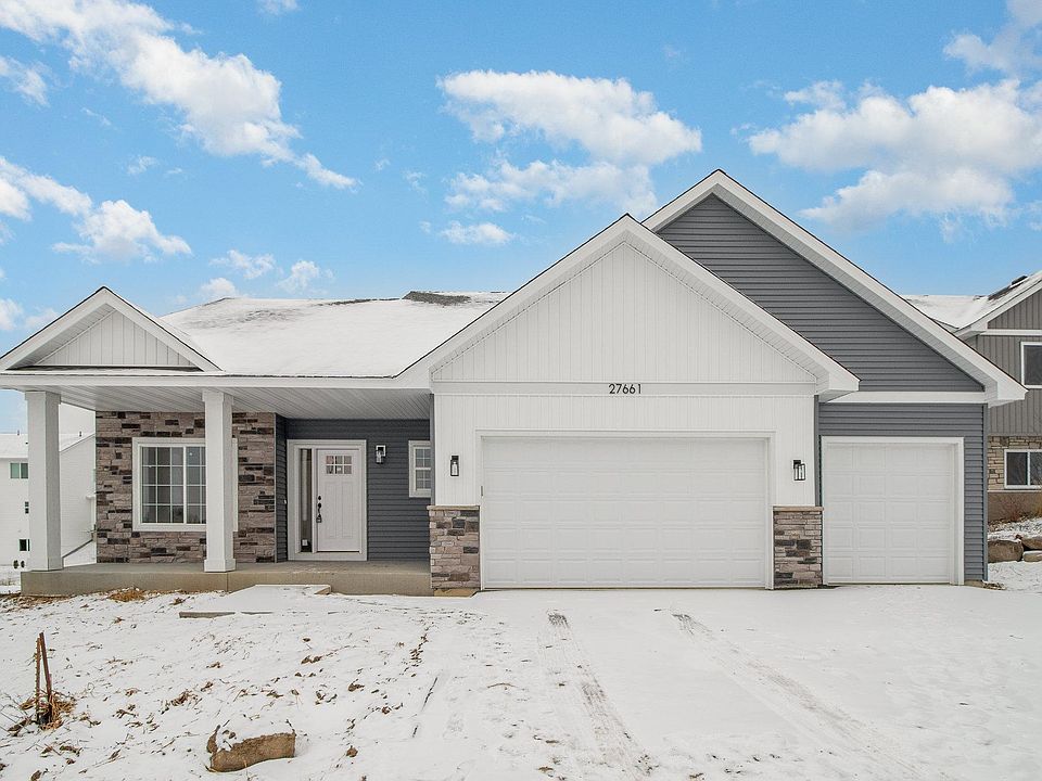 Beautiful new construction home nestled near the Boulder Pointe Glof Club in Elko. This home was tastefully designed for the growing family with 3 bedrooms and 3 bathrooms. As you step inside, you'll be greeted by an open concept with the kitchen, dining, and living rooms creating an inviting atmosphere. Cozy up to the gas fireplace in the main level living room for those cold winter nights. Stainless steel appliances, quartz countertops and a spacious walk-in pantry make it easy for the chef in your family. The primary suite boasts a private bathroom with a tiled shower, and walk-in closet. The unfinished basement is ready for your future plans to expand. Final grading and sod/landscaping to be completed in spring by the builder.