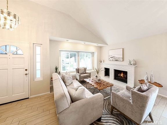 Welcome to Evergreen Ridge, a community of colorful Cape Cod style home in the award winning master planned city of Mission Viejo. Nestled behind two magnificent Norfork Pines, a Magnolia tree, and white picket fence sits 2661 Sweetbrier Ln. Entering through the front court yard, bordered by a variety of plants is the covered front entrance. As you enter you will notice two crystal chandeliers, one in the entrance and a larger one in the dining area. This formal open living/dining room is anchored by a double bay window, white brick fireplace, vaulted ceiling and patio floor to the side yard. The oversized country kitchen has plenty of cabinet space, granite counter tops, vaulted ceiling, custom recessed lighting and a ceiling fan over the eat in dining area. A sliding door exits to the rear patio with two patios, artificial turn, and putting green. A planter box for your gardening needs and surrounding the yard are a variety of miniature fruit trees and all fenced in for your privacy. There is electrical wiring available at the back side of the home if you care to add a Jacuzzi. Back inside the primary bedroom is large, with vaulted ceilings and two windows offering plenty of light and view to the greenery of the back patio and hillside. Dual closets and its own bath with tub/shower and custom skylight. The second bedroom or office has a large double closet and door to the attached double garage. All the windows and patio doors are vinyl double glazed, the flooring is carpet in the bedrooms and faux wood tile throughout the rest of the home. Laundry area and utility sink are in the garage. Membership to Lake Mission Viejo a short walk t two large shopping centers and the Trabuco Hills High School. This home will not last. Come visit today!