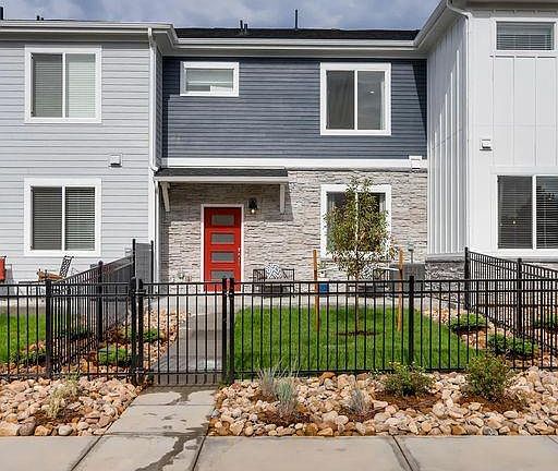 Brand new 1,498 sq. ft. townhome to be completed in April 2023. Functional two-story floor plan features open living room with 9' ceilings on main level, and fully fenced in front yard! Stunning kitchen with walk-in pantry boasts many designer upgrades, including 42" painted Maple Smoke cabinets, gas range, upgraded granite countertops, tile backsplash, and upgraded flooring throughout the main level. Owner's suite on upper level features walk-in shower with bench and oversized walk-in closet. 2 additional bedrooms are located on the opposite end of the home for maximum privacy, and upstairs laundry is conveniently located near all bedrooms. Enjoy amazing community amenities including resort pool/hot tub, clubhouse, onsite fitness center, dog park, sand volleyball, basketball courts, onsite PK-8 school, and miles of trails right outside your front door! * Sample photos are not of actual home.