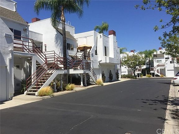 Charming upper level carriage unit, no one above or below, light and bright, high ceilings .One large size bedroom with walking closet, plus Den that could be converted to second bedroom . One car detached Garage plus ample guest parking spaces. Inside Laundry with washer and Dryer included. Good size kitchen with plenty of cabinets and tile floors, recessed lights and newer oven with flat cook top. Stainless steel refrigerator.Wood burning and Gas fireplace in living room . Low tax rate, no mello roos. Low associations dues which offers heated pool, spa and BBQ . Membership to Mission Viejo lake association with amenities such as: Beaches, fishing, boating and other special events activities. Easy access to freeways, mall, shopping centers, entertainments, hospital, medical centers and Saddleback College .