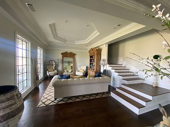 Elegant Two-Story Home with Southern Charm. The Beauty is in the details in this luxurious home with many features, such as, gorgeous custom tray ceilings through out, designer wainscot in the living areas, and on the Main Level a magazine worthy gourmet kitchen, a massive dining room large enough to seat 20+ people, the Grand Main Bedroom including a lavish walk-in closet, and an ensuite bathroom featuring a tiled two person walk-in shower, as well as, a state of the art Jacuzzi which oxygenates the water. More highlights include a library, 2 separate offices, and 4 HVAC systems to keep the rooms independently comfortable. Enjoy the tranquility of your front porch with 2 bed swings or being next to nature on your 18X30 back porch. On the property is a large shed with a full bath, with a BBQ pit and gardening area near, and 2 fenced in pastures ready to hold livestock or any other farming purposes.